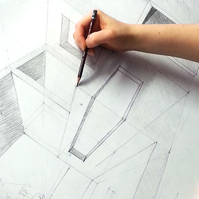 - teoria perspektywy rysunkowej (perspektywa jednozbiegowa, dwuzbiegowa, trójzbiegowa, konstrukcja prostych brył geometrycznych, konstrukcja cieni),